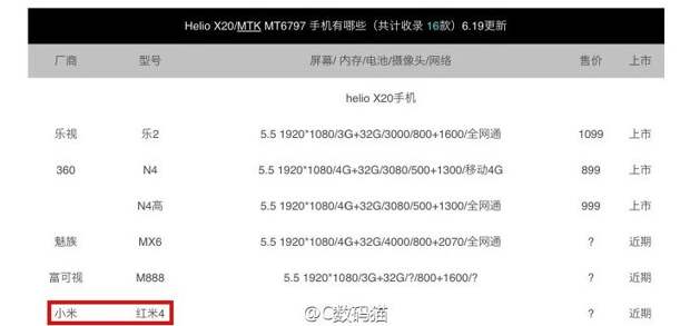 Судя по всему, Xiaomi будет стремиться сохранить привлекательность серии Redmi в предстоящей модели Redmi 4. Из утекшего изображения можно обнаружить, что новинка получит чипсет Helio X20 с десятиядерным процессором.