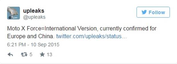 По его словам, релиз смартфона Motorola Droid Turbo 2 состоится уже в следующем месяце, в то время как международный вариант - Moto X Force - будет запущен в декабре этого года.