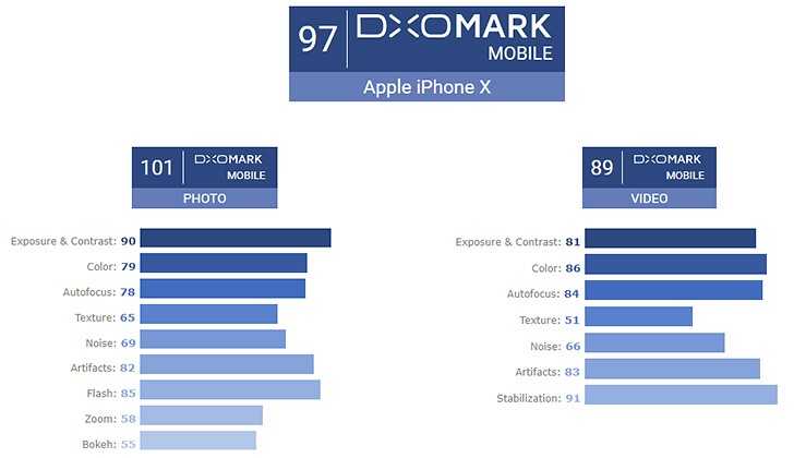 Видеокамера iPhone X показала себя не столь хорошо, как фотокамера - она получила всего 89 баллов, в результате чего общий балл снизился до 97. Таким образом, новый …