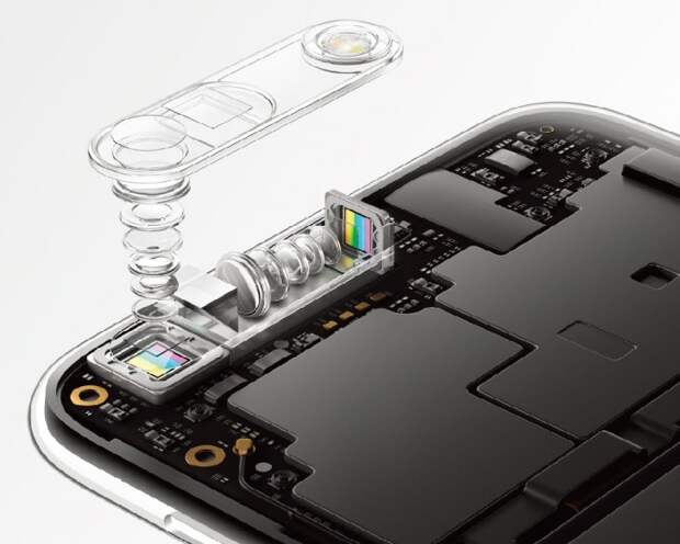 Камера Dual Camera Zoom состоит из 50 отдельных частей, которые складываются в модуль с общей высотой 5,7мм. 5-кратный зум модуля использует установку перископного вида, которая позволяет рассеивать свет через призму и внутри телефотографической линзы в смартфоне. Данный блок расположен под углом 90 градусов к широкоугольной линзе. Направляя путь свету, Oppo даже в пределах тонкого смартфона способна получить 5-кратное увеличение картинки без потери качества.